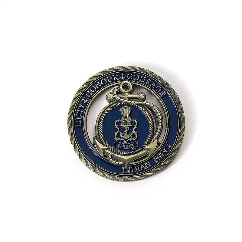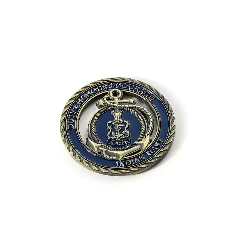 Moneda conmemorativa de diseño esquelético de color azul marino con un proceso de fundición a presión para conseguir un efecto esquelético en 3D, esmalte azul en ambas caras y metal de aleación de zinc en su conjunto.