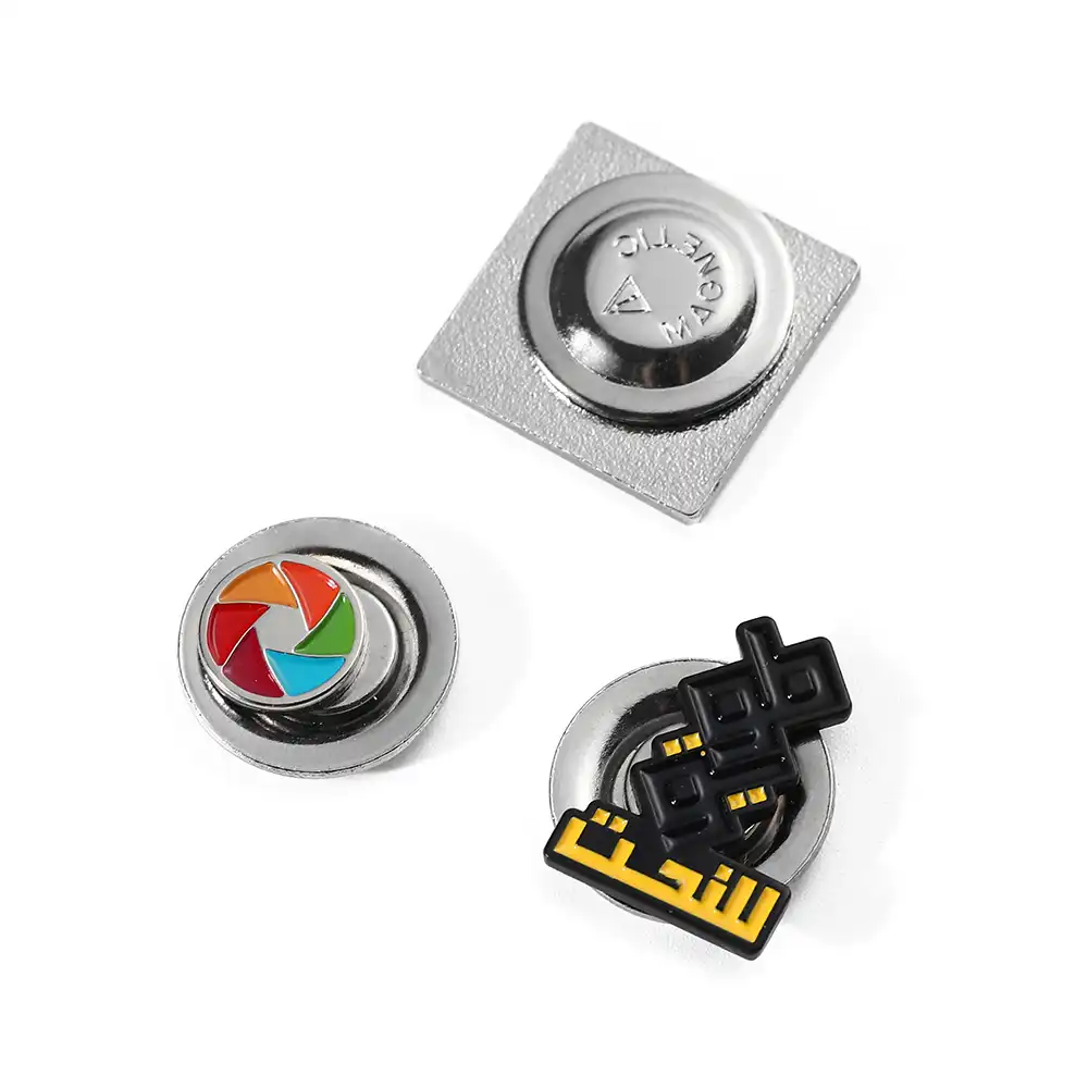 这套三件铁制 引脚 采用软珐琅工艺制作,具有优雅的阿拉伯书法和生动的快门设计。黑黄相间的阿拉伯文字、方形几何书法和彩色光圈别针展示了细致的金属勾勒和生动的色彩填充。它们采用光滑的金属底座和牢固的扣环,经久耐用、时尚美观,是装饰翻领、手袋或帽子的完美之选,将文化魅力与现代美学融为一体。.