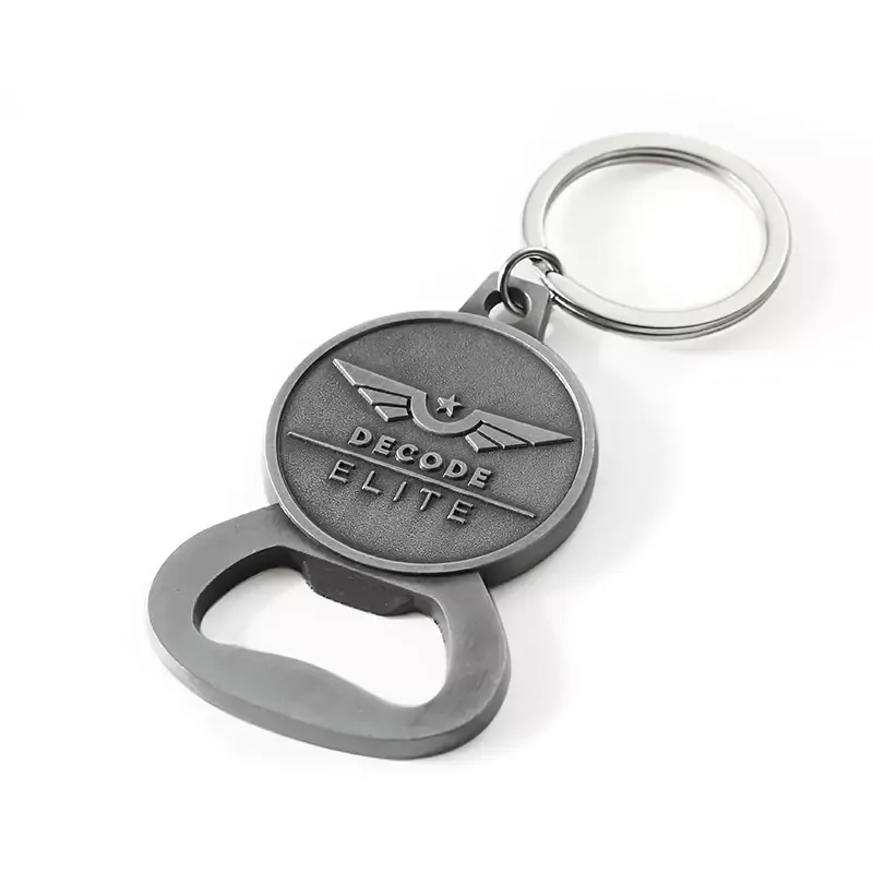 这个以 Decode Elite 为主题的 开瓶器钥匙扣 采用复古仿古银色饰面。正面采用浮雕式军事元素:五角星和翅膀,配以 “DECODE ELITE ”文字,散发出粗犷豪放的气息。它集钥匙扣和开瓶器功能于一身,小巧实用,是品牌促销和主题活动赠品的理想选择,展现了精英风范和坚韧质感。.
