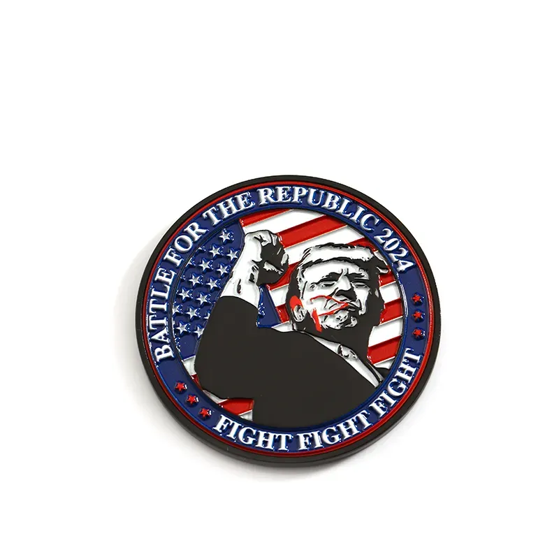 第 47 届总统就职典礼 挑战纪念币 is crafted from zinc alloy via die-casting, featuring a double-sided 3D relief design. The obverse uses the Stars and Stripes as the background, paired with the iconic raised-fist portrait and the inscriptions “BATTLE FOR THE REPUBLIC 2024” and “FIGHT FIGHT FIGHT”. The reverse is engraved with “47”, the presidential signature, and the inauguration date “JANUARY 20TH, 2025”. Its red-and-blue color scheme embodies patriotic sentiment, making it a high-quality souvenir for collection and gifting.